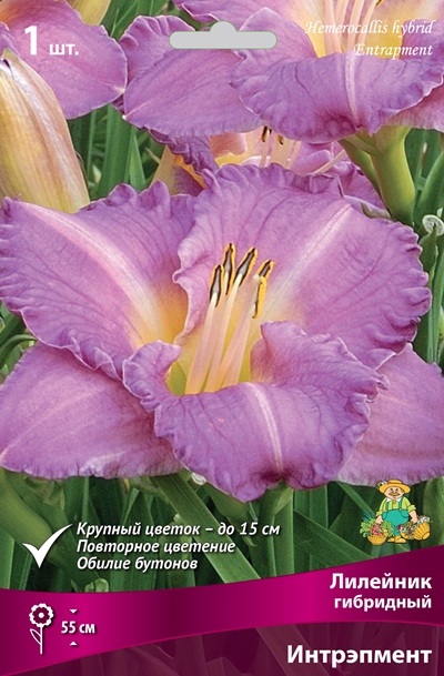 Интрэпмент - ОЧЕНЬ МНОГО ЦВЕТОВ, на 3-й год за сезон до 700 бутонов! Цветок пурпурно-сиреневый с желто-зеленым горлом и белесыми полосками вдоль центра лепестков, края лепестков гофрированы, диаметр цветка 15 см. Повторное цветение.